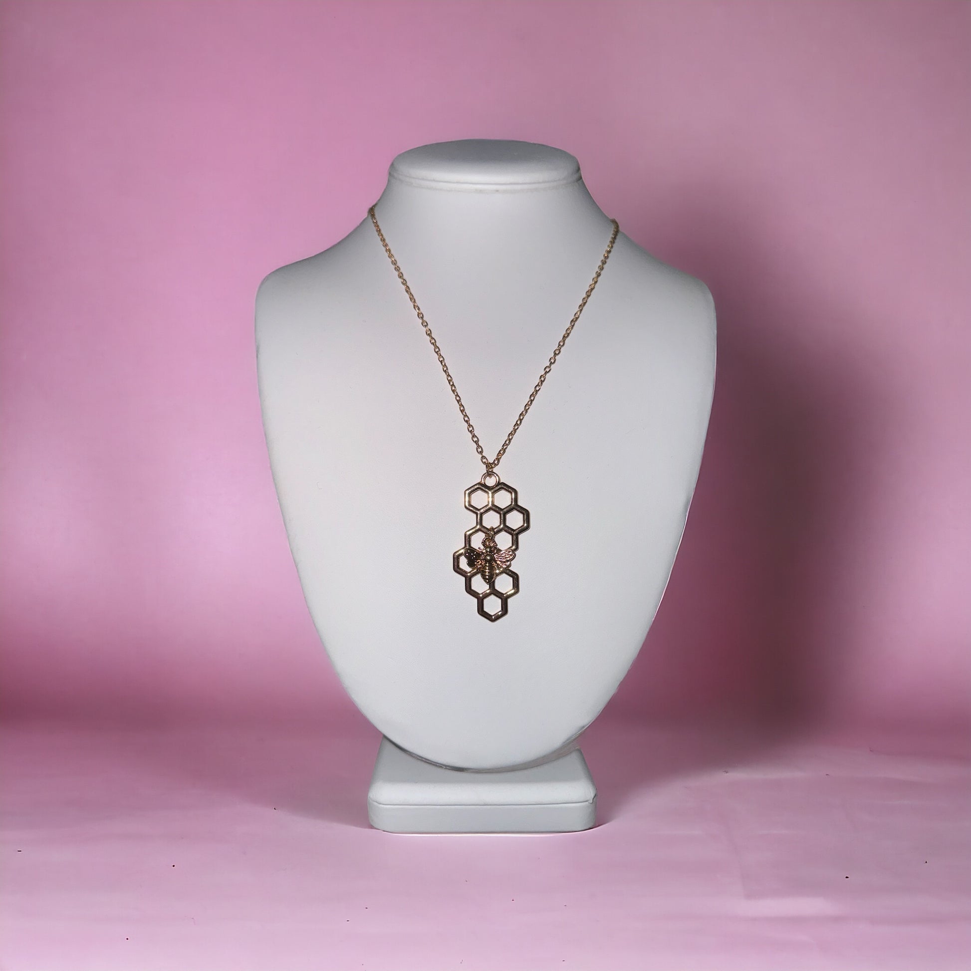 Buzz up your style with our Gold Bee Hive Necklace! This quirky piece features a delicate gold bee hive pendant, adding a touch of whimsy to any outfit. Show off your individuality with this buzzworthy accessory. (Bee-lieve me, you'll bee obsessed!)